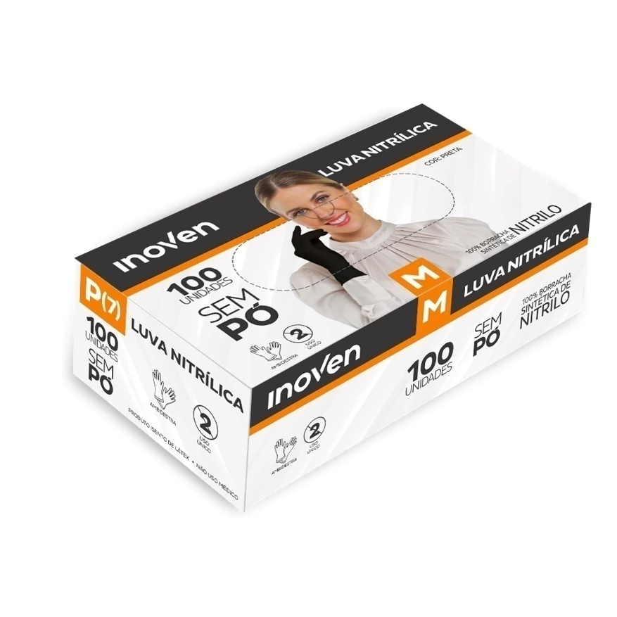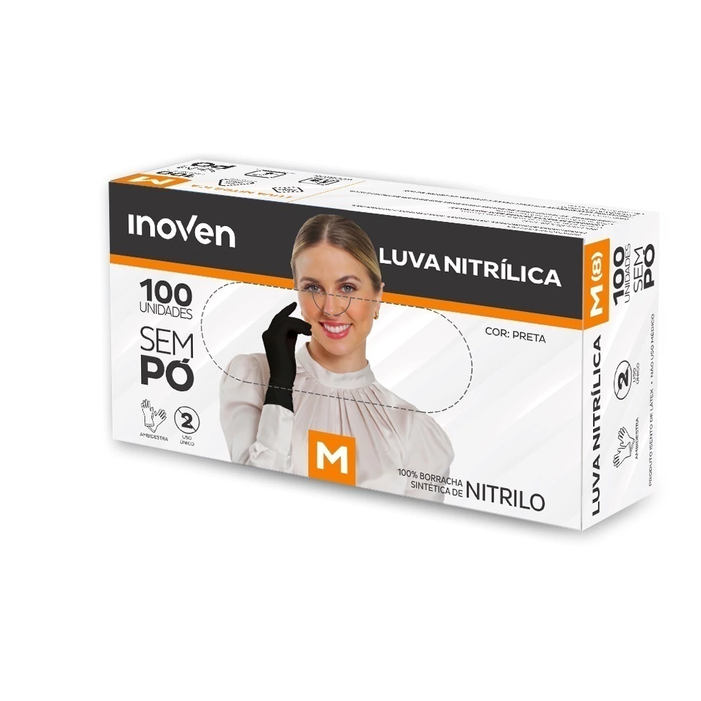 Produzida em nitrilo, a Luva Nitrílica preta da INOVEN é destinada para a segurança e proteção durante procedimentos.