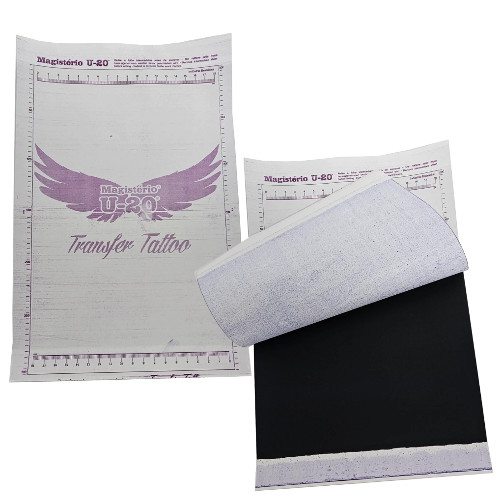 O papel hectográfico U-20 é ideal para transferir desenhos para a pele, proporcionando precisão e exatidão durante o procedimento de tatuagem. É essencial utilizar uma solução de transferência, como creme, bastão ou spray, para fixar o desenho na pele de maneira eficaz. Esses produtos garantem que o desenho seja transferido com precisão, permitindo que o tatuador trabalhe com confiança e obtenha resultados satisfatórios.