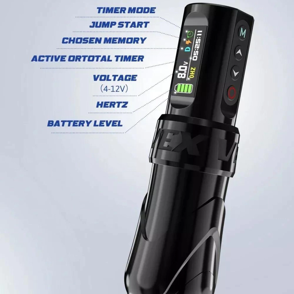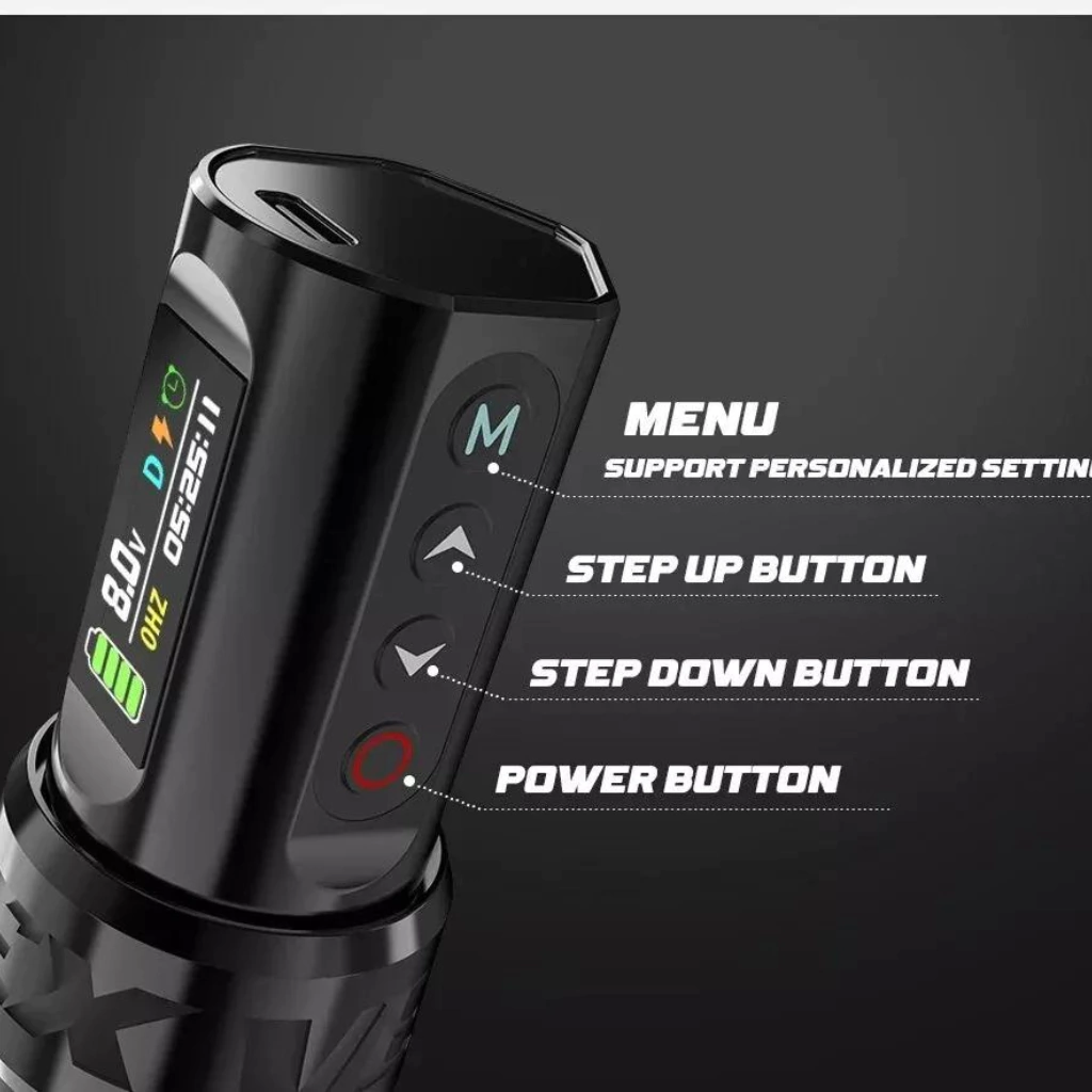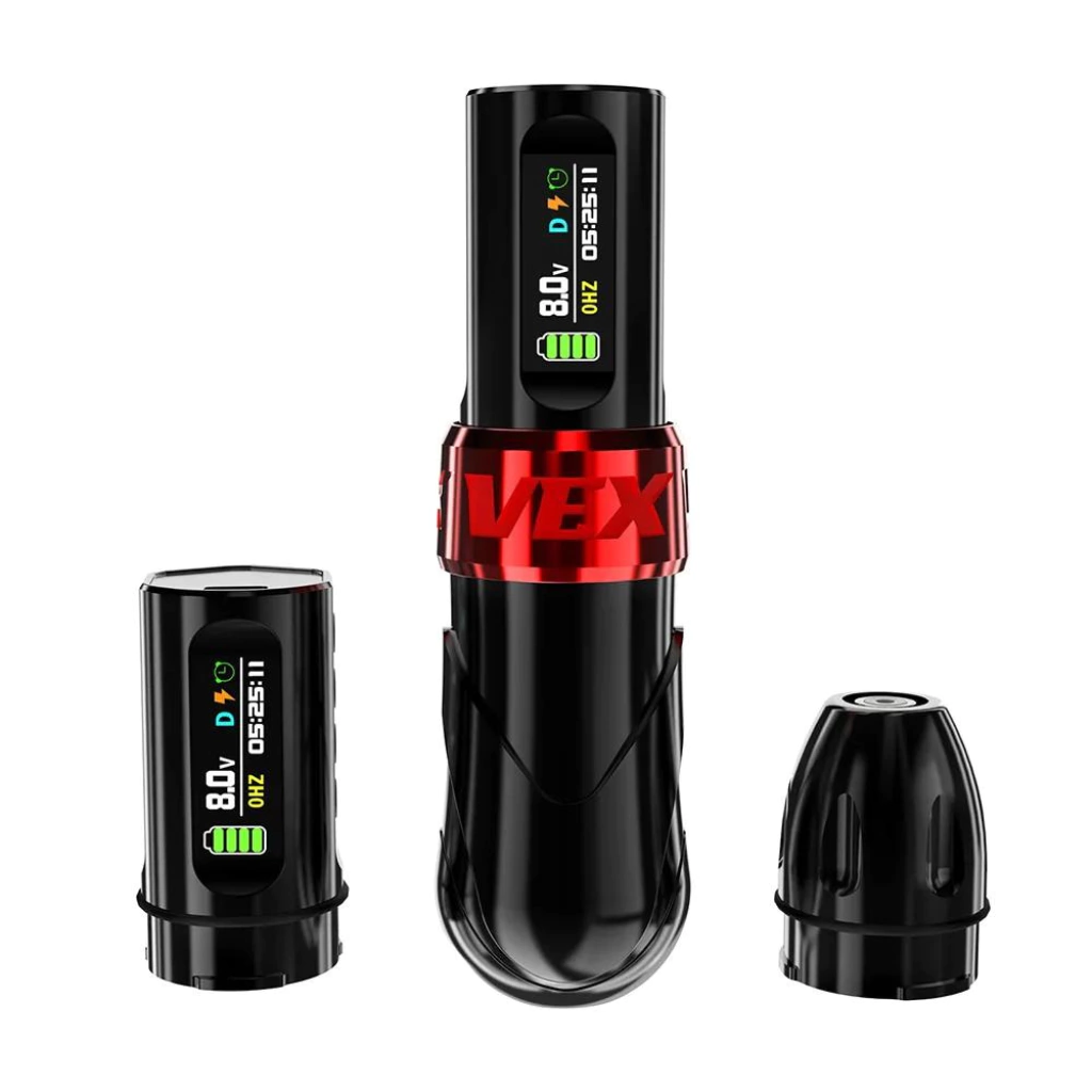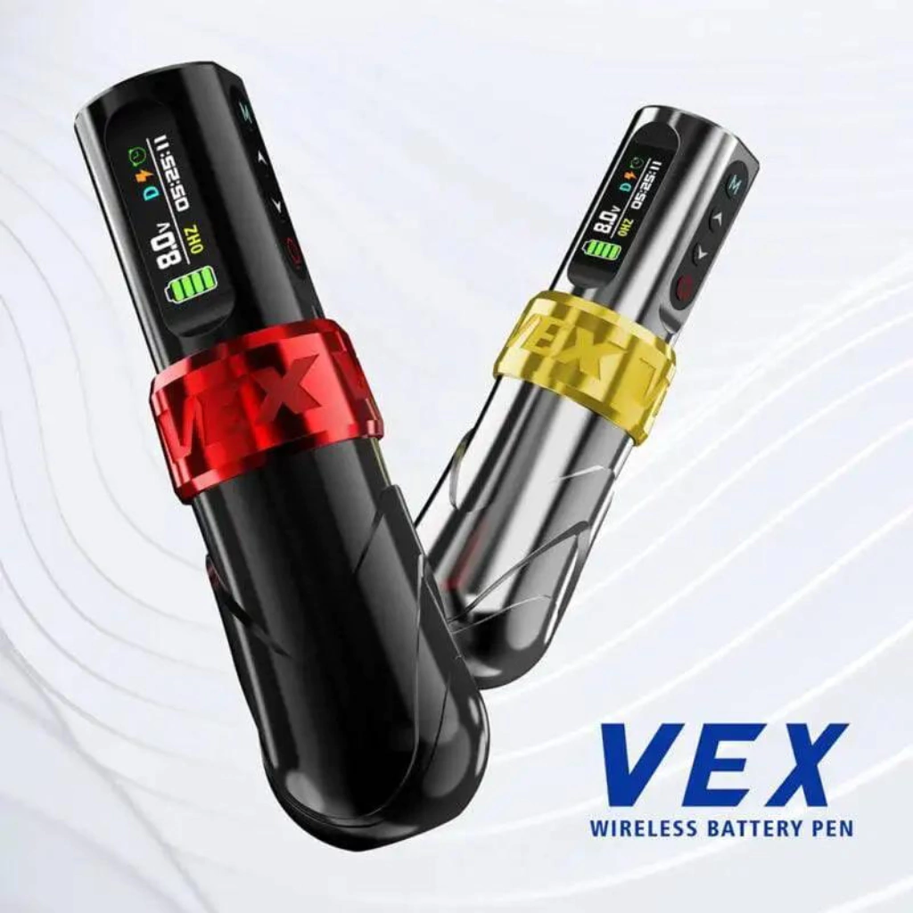 A Pen Vex Wireless é ideal para iniciantes e profissionais da tatuagem, com design ergonômico em liga de alumínio.
